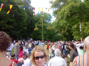 A little orchestra is now playing traditional Swedish songs and all the people (a couple of hundred) starts to sing and dance around the pole…. Many of the songs are really stupid but we love them….